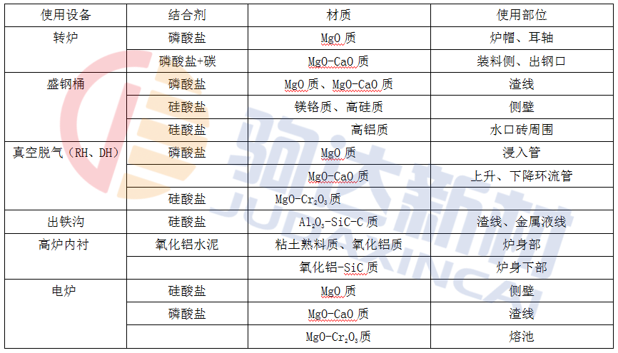 表9-7 噴補料材質(zhì)與結(jié)合劑