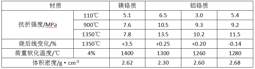 表1-2 鎂鉻和鋁鉻質(zhì)可塑料的性能