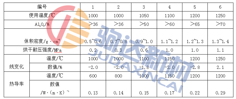表1 耐火纖維澆注料的性能和使用溫度