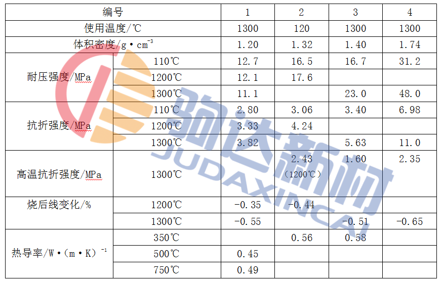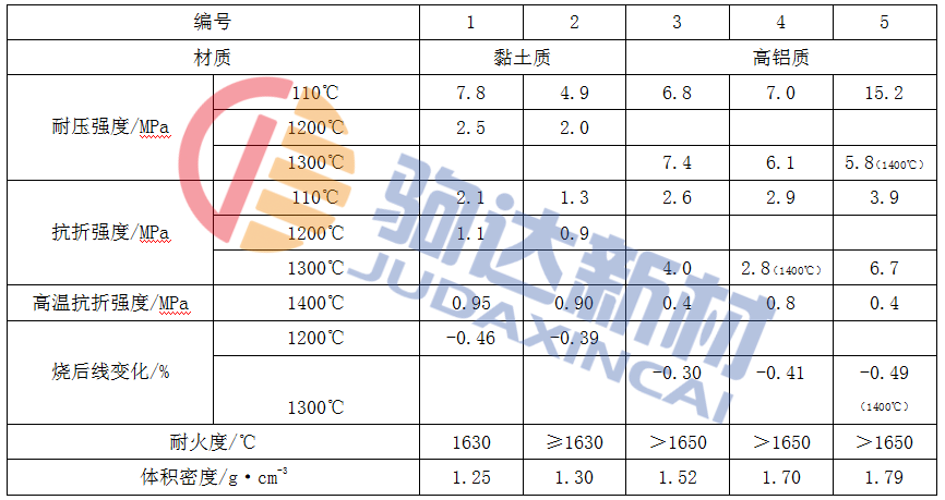 表1-2 普通多孔熟料澆注料的性能