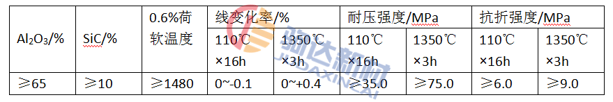 注:表中的理化性能數(shù)據(jù)來自Al2O3-SiC澆注料生產(chǎn)廠