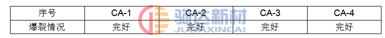 根據以上分析,在澆注料中加入的防爆纖維應該具有較低的熔點,使得澆注料襯體在烘烤過程中盡早產生排氣通道,使得澆注料襯體在烘烤過程中盡早產生排氣通道,緩和水蒸氣壓力,加快其擴散,同時,考慮到配料時有機纖維的不易分散性和對材料施工性能與使用性能的影響,有機纖維加入量不能大,纖維不易太長,即纖維總量盡可能小,數量盡可能多。在CA料中分別外摻0.5a、1.0a、1.5a、2.0a(a為本試驗中運用的特定數量單位)有機纖維,得到的澆注料編號分別為CA-1、CA-2、CA-3、CA-4。除了做表3同樣的烘烤試驗外,又根據CA澆注料的脫水過程分析,將養護脫模后的試樣(50mm×50mm×50mm)的直接放入已升溫到600℃的保溫電爐中,觀察材料的爆裂情況。試驗結果見表4~表6。