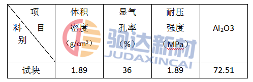 以五軋廠1號(hào)加熱爐使用高鋁磷酸鹽澆注料,采用不困料工藝,使用PA-80膠結(jié)合劑和添加4%的水施工。我們?nèi)〔鸪骓敋垑K進(jìn)行理化分析(見(jiàn)表3)。