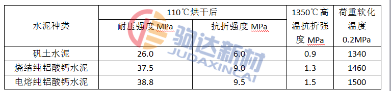不同水泥高鋁質(zhì)耐火澆注料的性能 表4