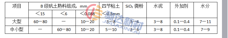 為了克服普通水泥澆注料的缺點(diǎn),使?jié)沧⒘暇哂休^高的物理性能和優(yōu)良的耐化學(xué)侵蝕性、提高使用溫度,必須降低水泥用量,使CaO含量降低到1.5%左右。因此參照國(guó)內(nèi)外經(jīng)驗(yàn)和專利,進(jìn)行了軋鋼加熱爐用低水泥高鋁質(zhì)澆注料預(yù)制塊的研究。