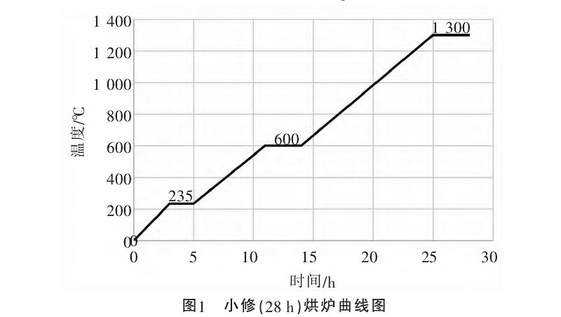 烘爐溫度上升情況基本符合烘爐溫度曲線圖表的規定。溫度上升不應有顯著的波動,也不應太快,否則將產生不均勻膨脹,導致砌體破壞。圖1和圖2列舉了兩種典型的烘爐曲線圖。